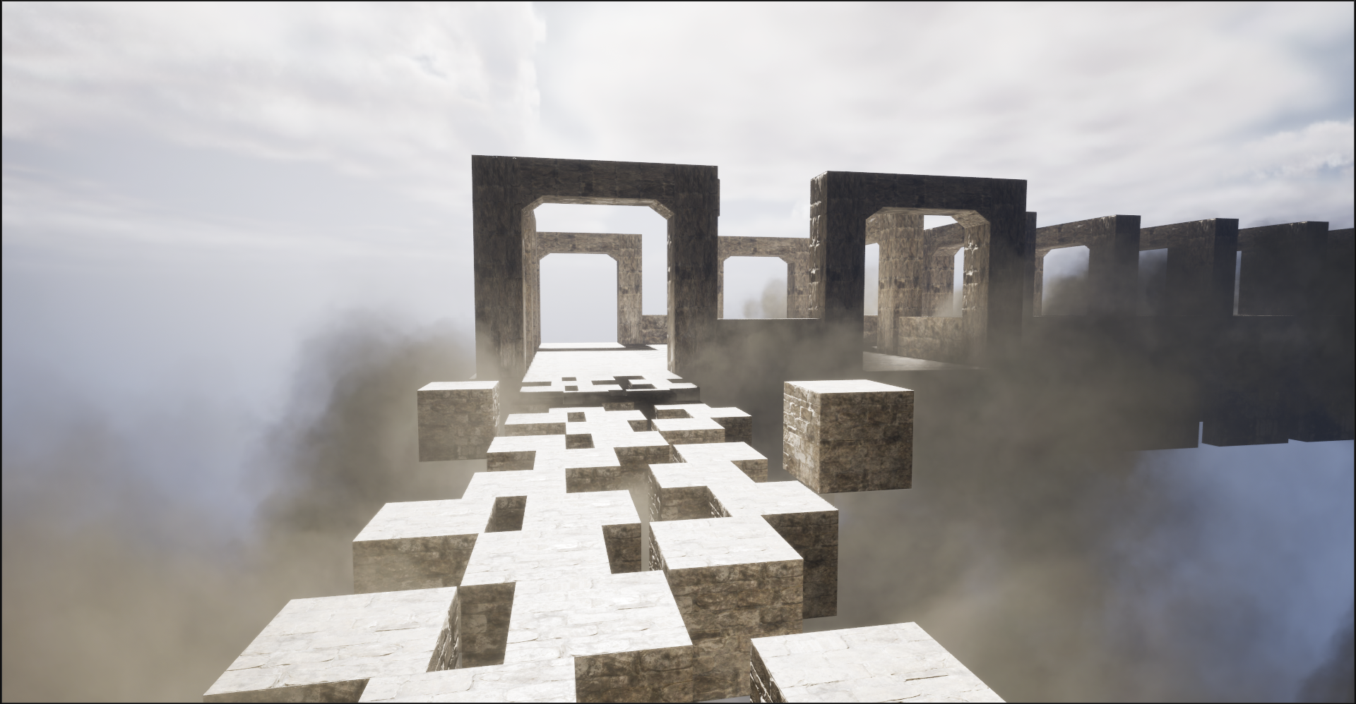 The stones move into place like the Diagon Alley ones in the film to build the bridge as you walk across it. I'll add smaller bits to the finished version once the general mechanics are done on the larger stones.