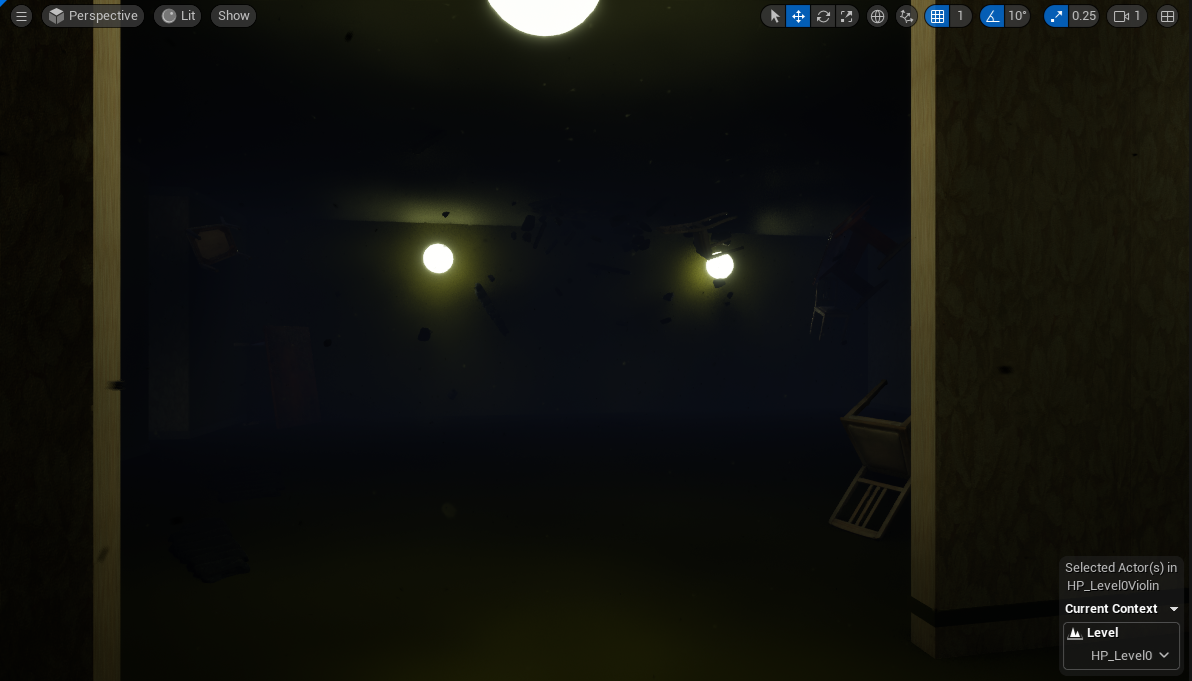 Starter area, where you first fall through the RoR and quickly realise that your wand is useless. I still want to add more 'broken things'. But I'll leave it alone for now and come back to it later and see what I think. I've got the weird crackling broken magic background sounds added now, which makes a difference while you're walking around the place.