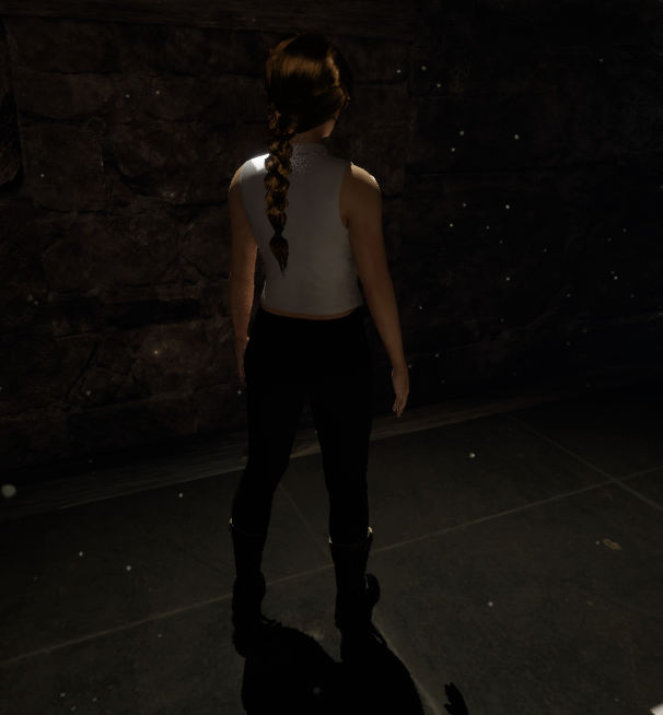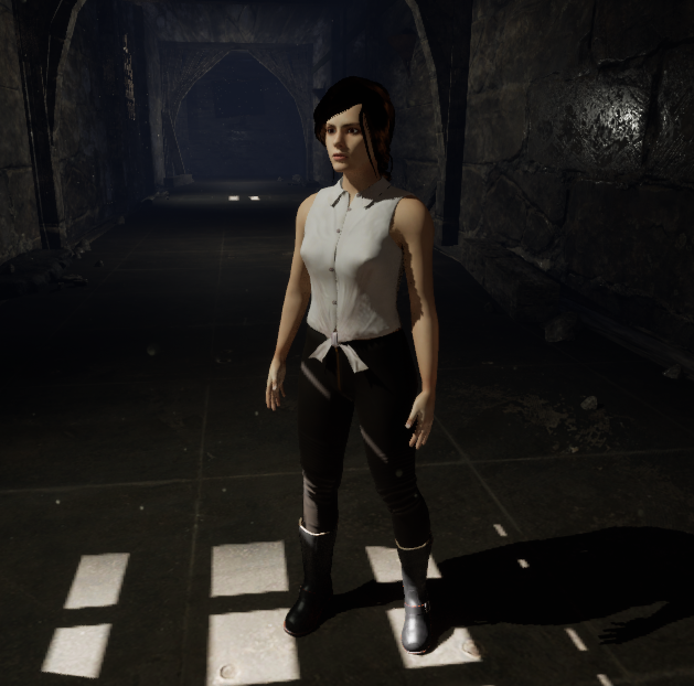 Most of the game is first person, so you'll only see her in the cut scenes. I've tried to stay closer to the books in terms of hair colour, but still deciding tone, etc.